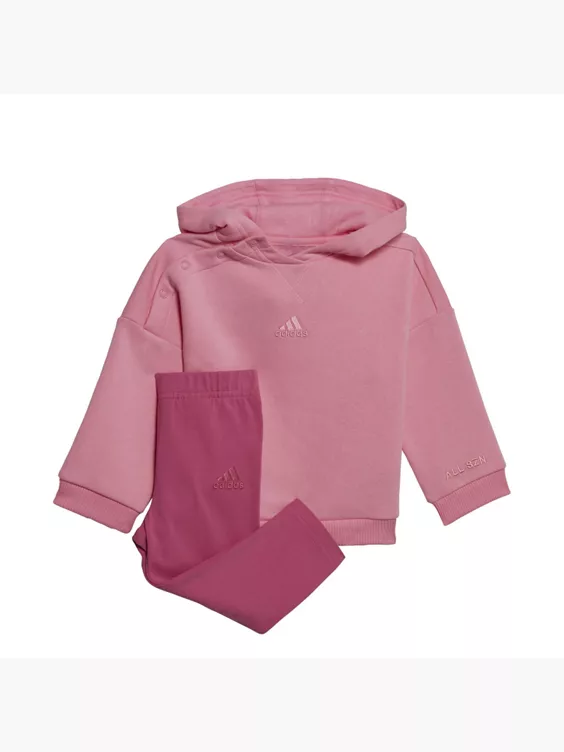 In diesem adidas Trainingsanzug für Babys und Kleinkinder hat es dein kleiner Schatz superbequem. Die stretchigen Beine sorgen für einen passgenauen Sitz und sind perfekt für kleine Wirbelwinde. Dank der Druckknöpfe an der Schulter lässt sich der Hoodie außerdem schnell und easy an- und ausziehen. Das Produkt hat einen Recycling-Anteil, der aus Textilabfällen, Resten und Haushaltsabfällen hergestellt wird und damit eine bessere Ökobilanz hat als neu produzierte Materialien. Unsere Baumwollprodukte unterstützen einen nachhaltigeren Baumwollanbau.