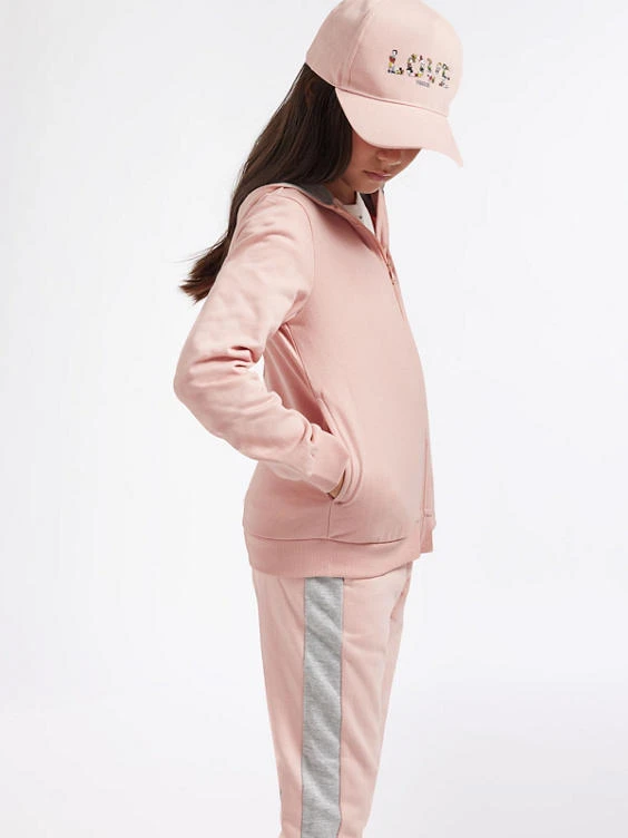 - modische Sweatjacke in rosa mit Kapuzenfutter in grau melange